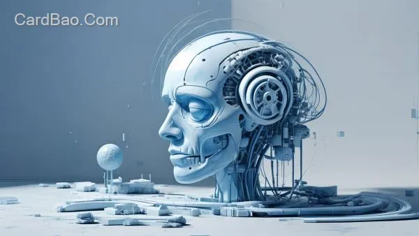 画一个AI主题的建模作品,C4D风格,细致化,蓝色和白色