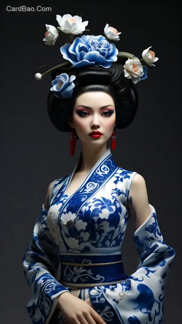 Action Figure. Blue and White Porcelain, High-Definition Yang Guifei.