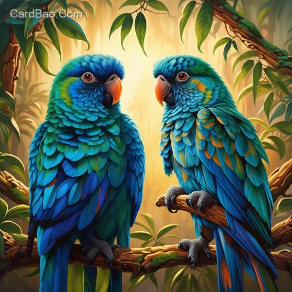 一只蓝色的虎皮鹦鹉和一只绿色的虎皮鹦鹉一起站在树枝上