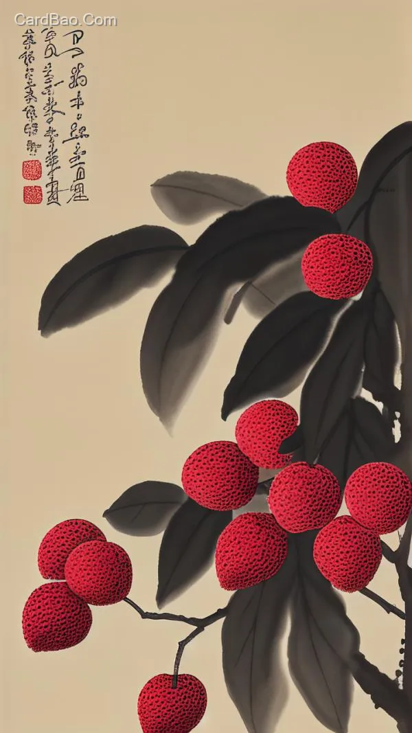 Ink wash painting, lychee, Lingnan, color diffusion, antiquing, silk scroll.