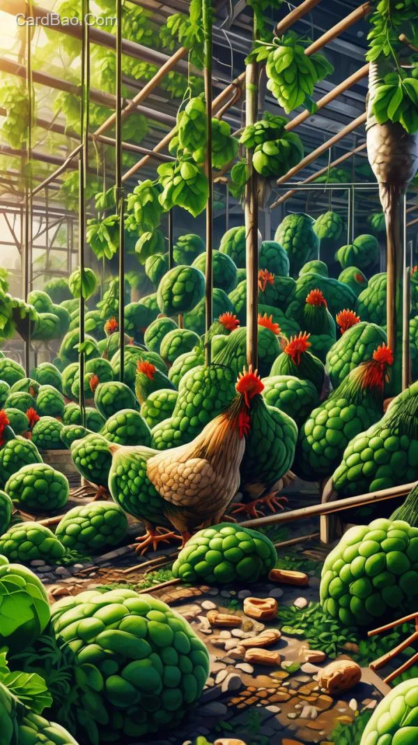 Green farming chickens eat green feed.