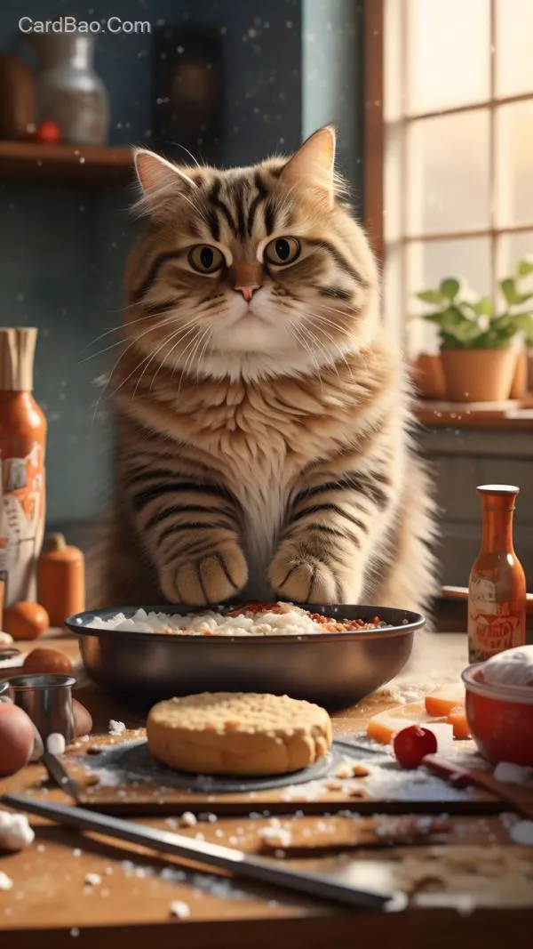 A chubby cat is cooking, 8K HD, perfect figure.