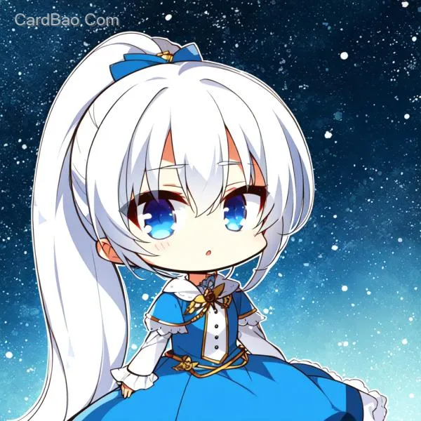 A girl with a high ponytail, white long hair, blue eyes, wearing a blue gown, ultra-high definition, cinematic lighting.
