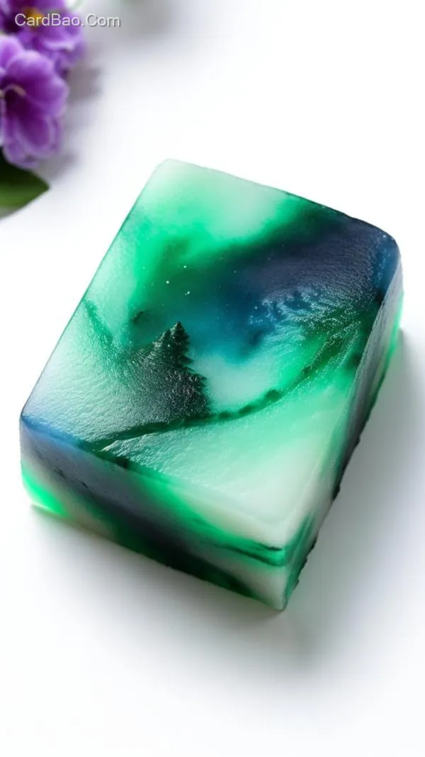 好看好吃的糖年糕,雪景图案浮雕,漂亮可爱,温润软糯,透明,半透明,极光色彩,光泽靓丽,唯美梦幻,雾化效果,糕点质感,明亮奶白糖霜色,白色白色背景,极简主义