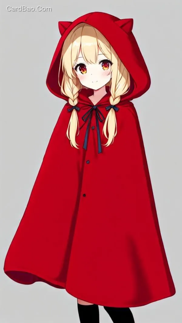 Little Red Riding Hood has arrived in Fushun, with a super large red cloak, golden hair, double ponytails, full body, in a cute style.
