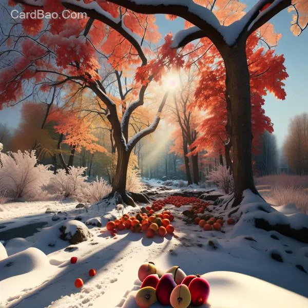 春的生机,夏的阳关,秋的硕果,冬的雪景