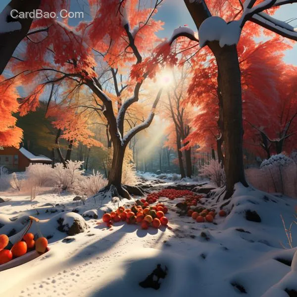 春的生机,夏的阳关,秋的硕果,冬的雪景
