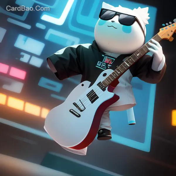团团戴墨镜,弹吉他,赛博朋克