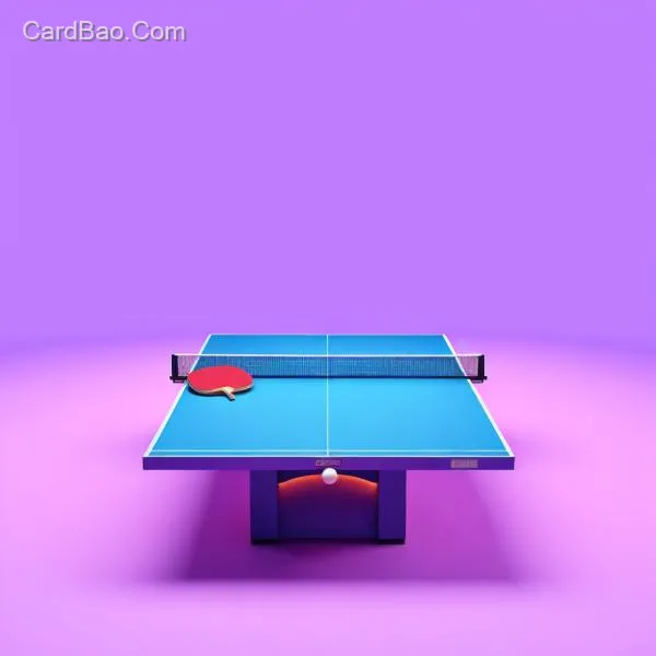 Ping pong table, ping pong paddle, light purple Pantone color, vast white space, low angle shot, concept art.