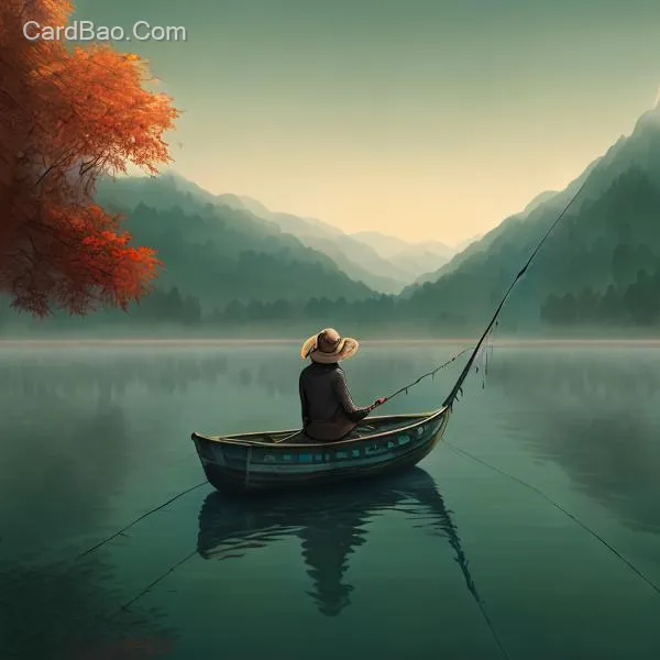 钓鱼 孤舟蓑笠翁 手竿 鱼护 浮漂 秋天 青山绿水 枫叶 清晨 薄雾 静谧