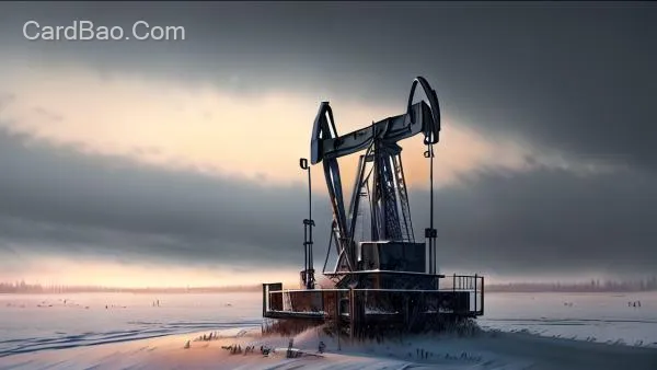 雪原上的石油井架,暴风雪,黄昏