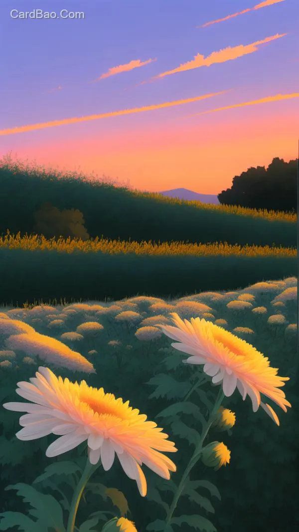 Picking chrysanthemums under the eastern fence, yet dusk is drawing near.