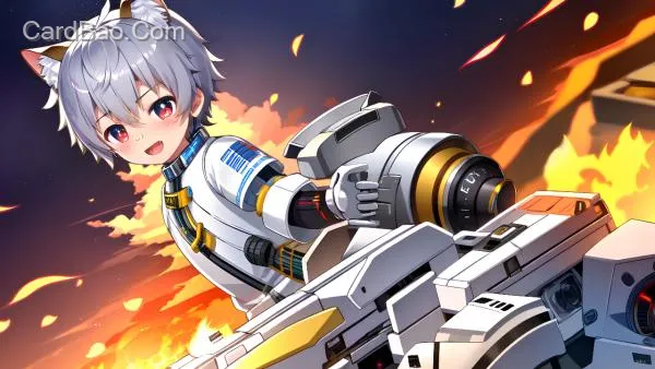 可爱的怂鼠,未来科技,机械战甲,科技感,火焰环绕,华丽,华美写实