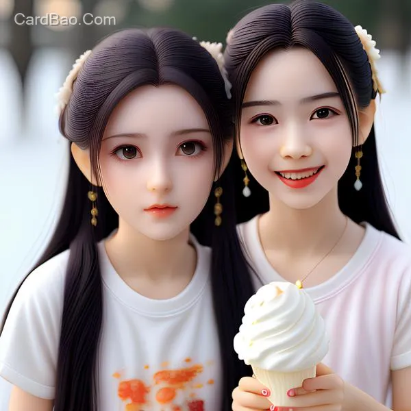 小妹妹吃雪糕,笑嘻嘻,雪糕融化