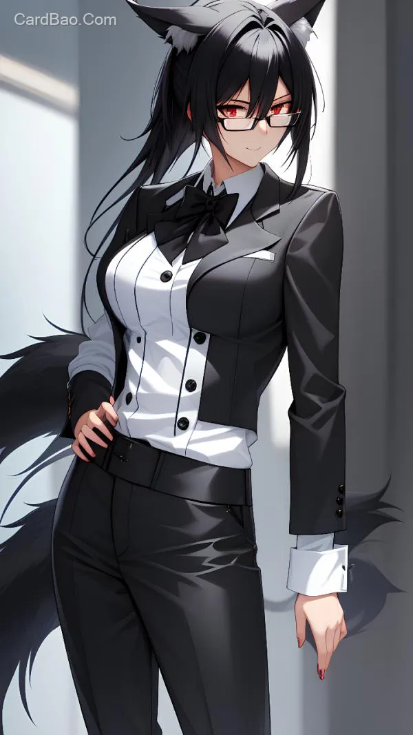 立绘,成女,黑发,狼尾发型,管家,黑色眼镜