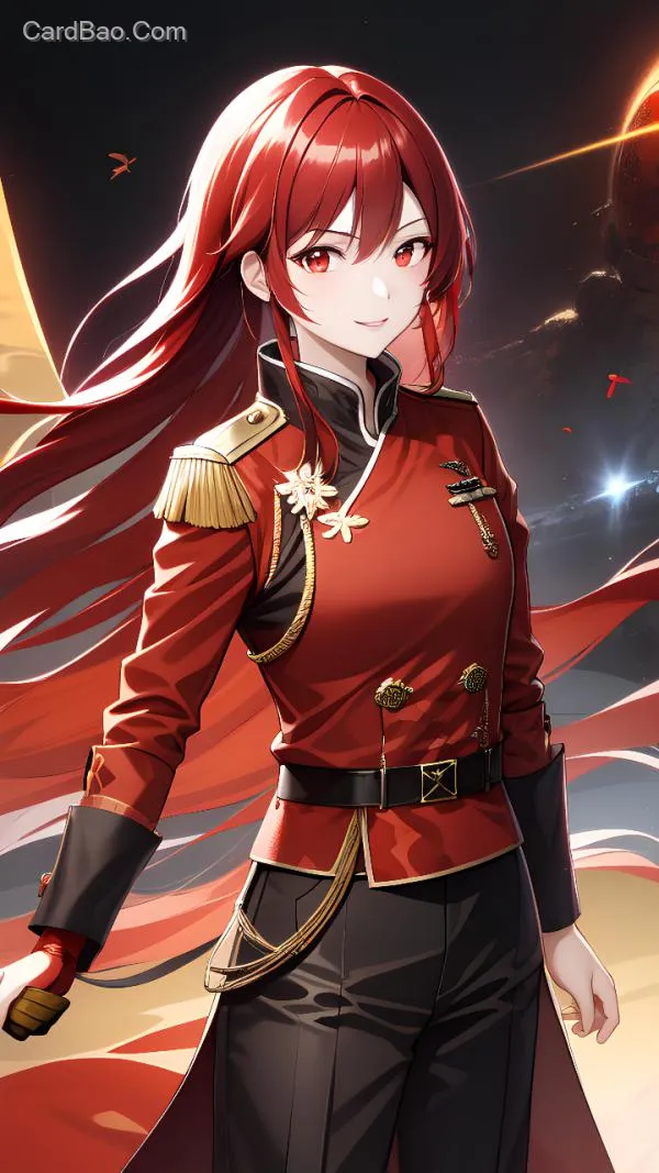 立绘,女性军官,红色长发,黑红西式军服,指挥中心,金色臂章