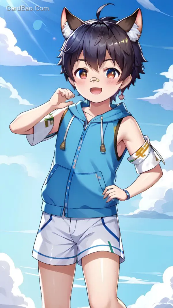 怂鼠,明媚夏天,蓝天白云,男孩鲜花,超高清细节