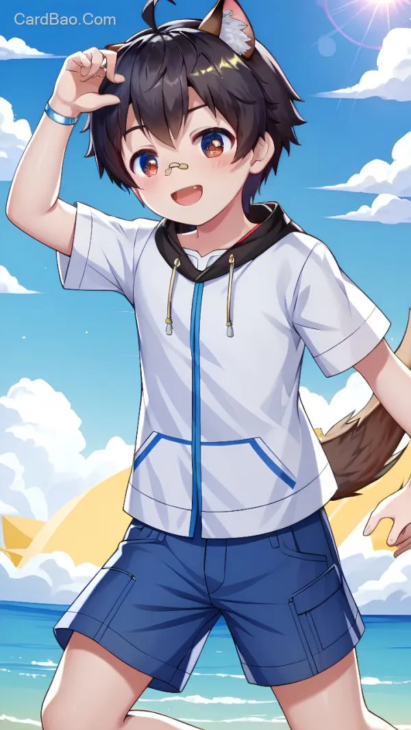怂鼠,明媚夏天,蓝天白云,男孩鲜花,超高清细节