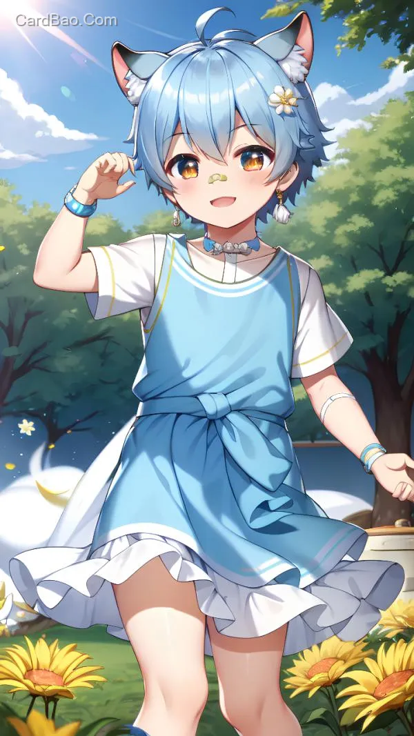 拿着天平,天秤,淡蓝色头发的怂鼠,白色公主裙,午后阳光,白鸽,微笑,波斯菊,清新洛可可