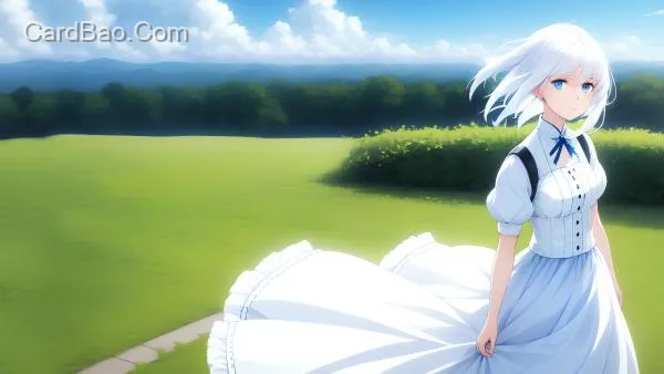 白发少女,蓝色眼眸,迎风自立,眺望远方