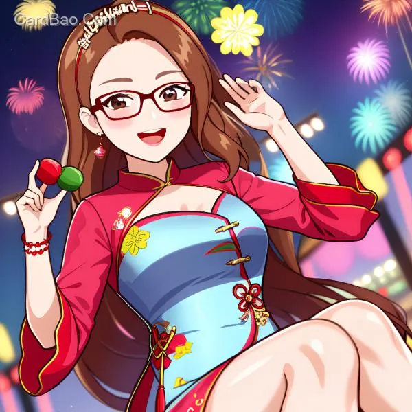 Teacher, New Year, festive atmosphere, Year of the Dragon, Chinese New Year's Eve, traditional Chinese attire, elegant, dignified, wearing glasses, flat-chested.