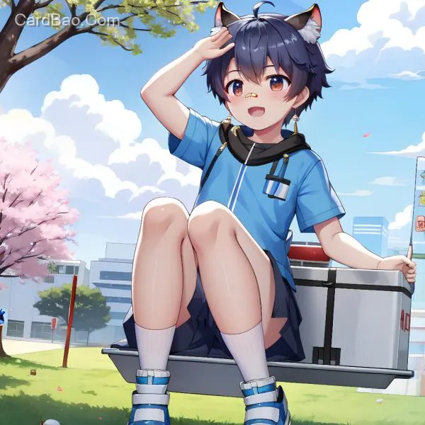 怂鼠,蓝天,白云,校服,在樱花树下