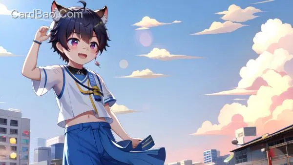 Timid mouse, blue sky, white clouds, school uniform, campus.