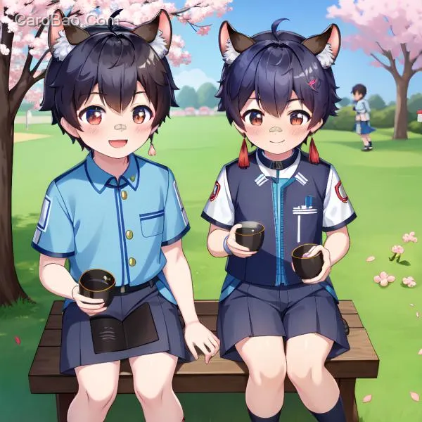 怂鼠,蓝天,白云,校服,可爱,女孩服装,在樱花树下
