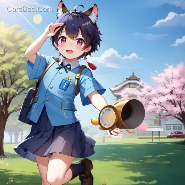 怂鼠,蓝天,白云,校服,可爱,女孩服装,在樱花树下