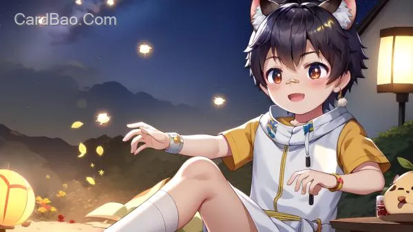 怂鼠,温柔,梦幻修饰,在璀璨星空下,萤火虫,创意构图