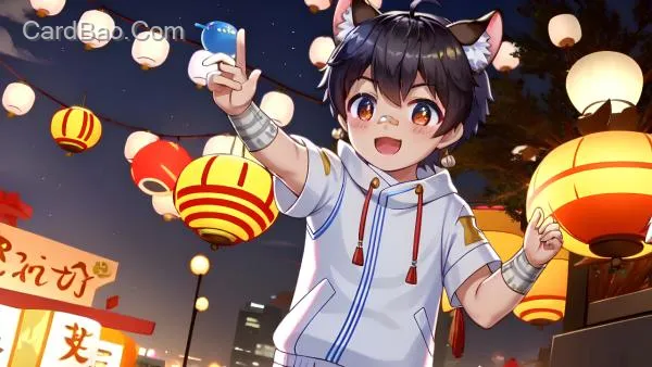 Timid mouse, waving, Yuanxiao lanterns, festive atmosphere