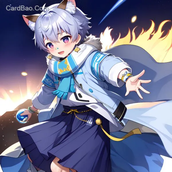 Timid mouse, cold and aloof, long skirt, metallic accessories, noble, starry sky background
