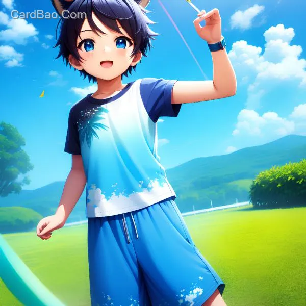 衍纸画,带动物色彩的男孩,明媚夏天,蓝天白云,3d模型,超高清细节,虚幻渲染,电影级光线