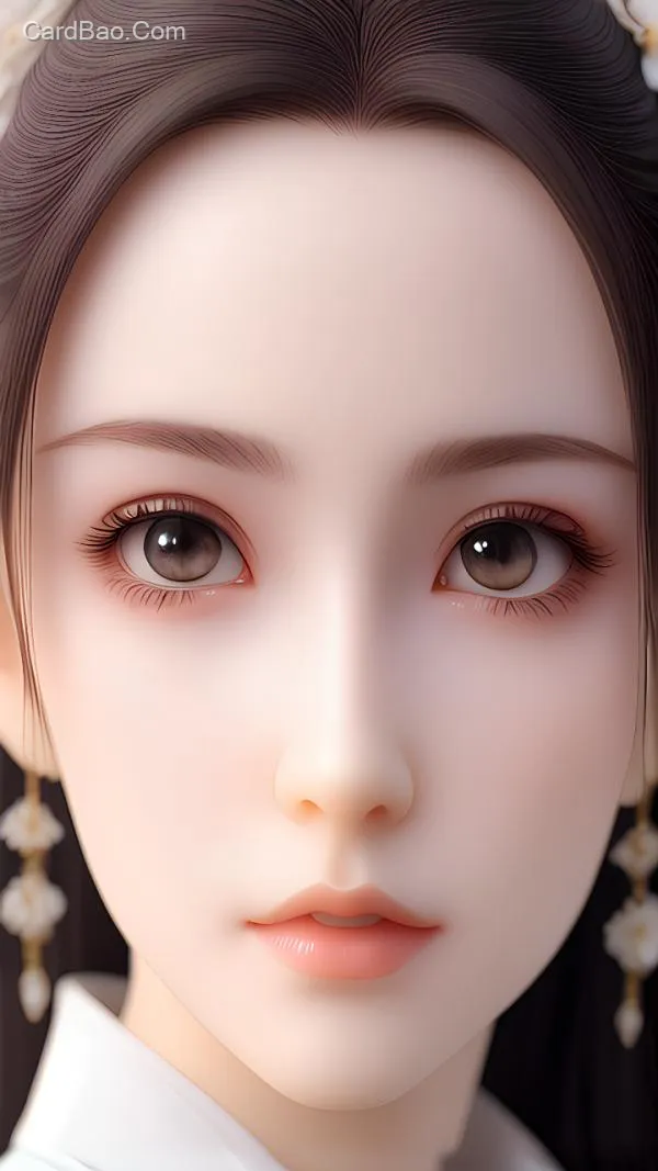 Ancient-style maiden, realistic macro shot, fair and translucent skin, large brown eyes with bright pupils, contour lighting, exquisite details.