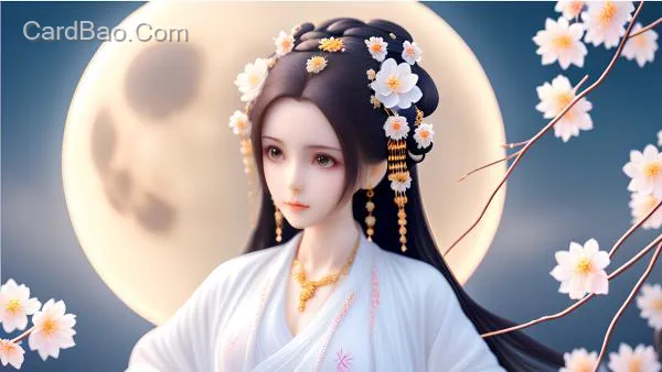 平面摄影风格,超高清,8K,空气感,轻盈,美丽的月亮,美丽的广寒宫,美丽的嫦娥仙子,手捧一只小兔子
