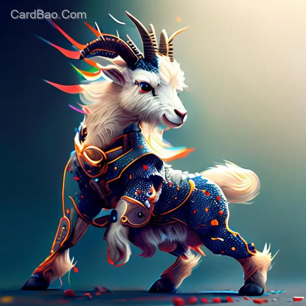 Cute goat, wuxia style, sci-fi, extreme detail, particle effect, 3D, game concept art, Akihiko Yoshida