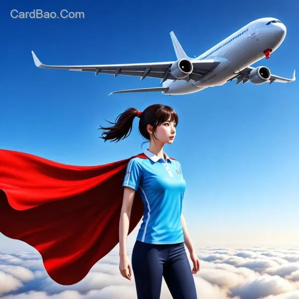 沈阳大学拟人,巨大的红披风,单马尾,浅蓝色运动衫,数百架飞机在天上飞