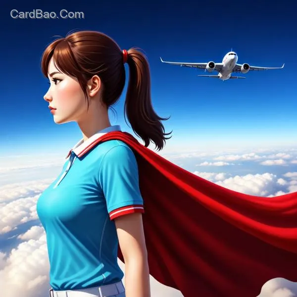 沈阳大学拟人,巨大的红披风,单马尾,浅蓝色运动衫,数百架飞机在天上飞