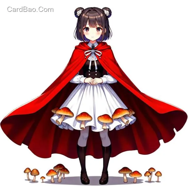 爱丽丝来到铁岭,捡到好多牛肝菌,一口一个,身体变大了许多,身披大红披风,全身,偶像漫画风