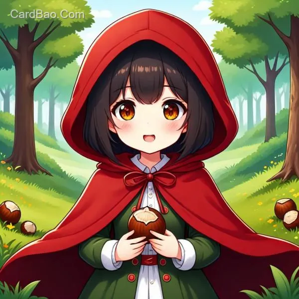 小红帽来到铁岭,喜欢吃榛子,在榛子林中,大红披风,全身,偶像漫画风