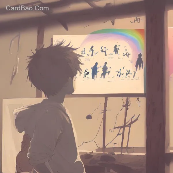 画一个男孩站在山顶上,眺望遥远美丽的大山还有森林,给人一种回忆的感觉,有质感,优美,男孩一定要仿照我上传例图中的,图中男孩的衣服要较长,仿照例图中的衣服,青春初三男孩,身高不要特别高,初中校服的尺寸就行