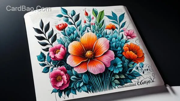 Draw a magazine cover with fluorescent markers, featuring flowers, delicate and intricate details.