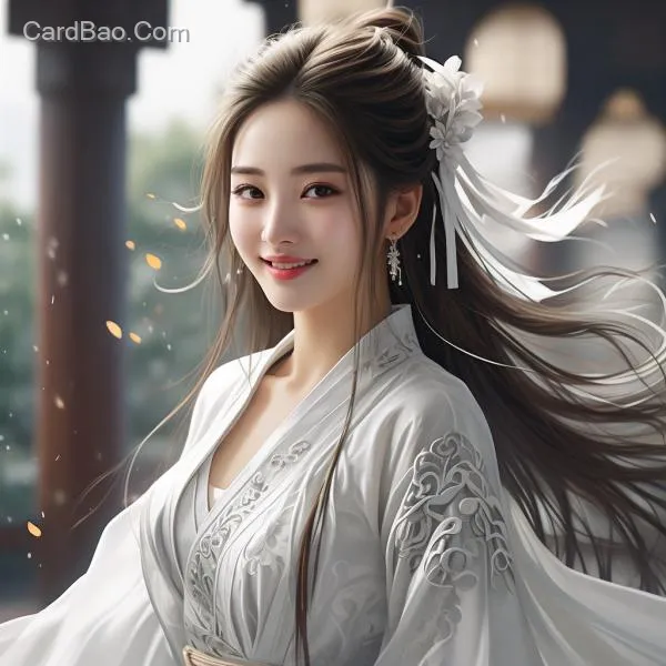 White clothing, beautiful woman, long hair, straight hair, ethereal aura, full body, smiling, 4K