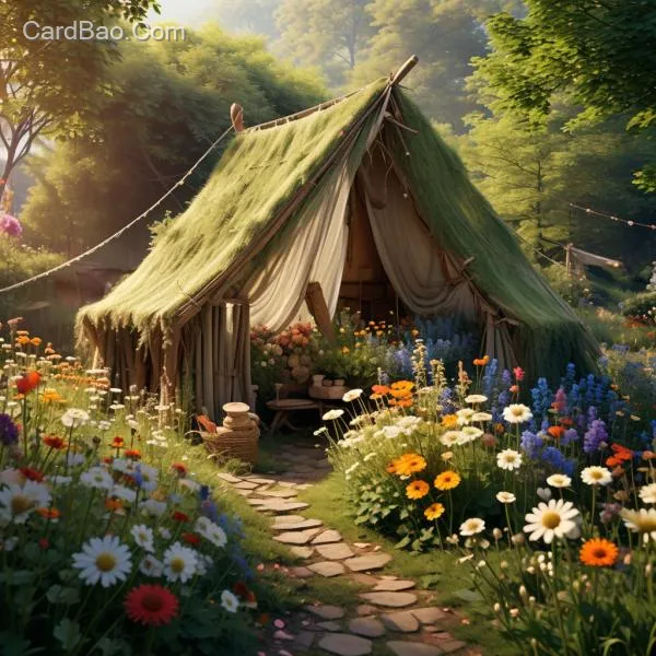 Gauze Curtains in Grass Sheds, Wild Flowers Sway in Enchanting Fields