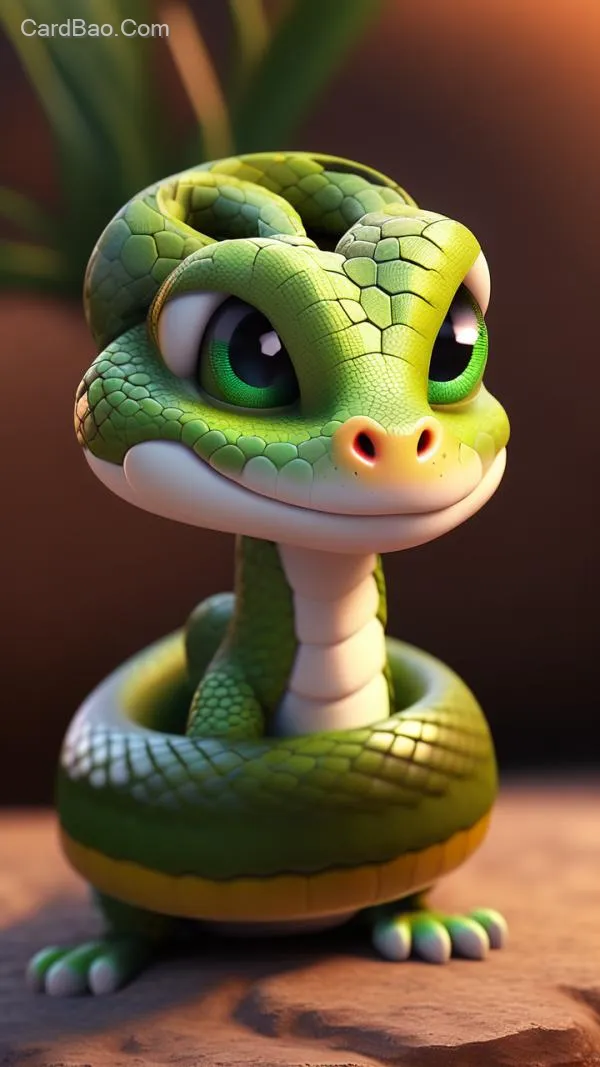 Cute Auspicious Snake, 3D Stereoscopic, CG, Year of the Snake, Ultra-High Resolution, Exquisite Texture