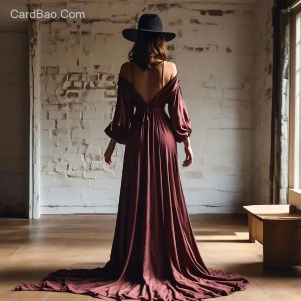 欧美女性长袍背影,蚕丝包裹,室内