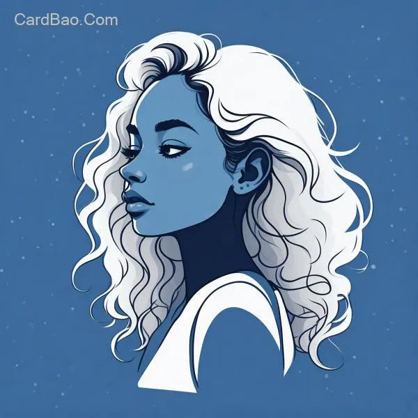 手绘插画风,极简,头像,宝蓝色背景,白色的人物剪影,卡通,少女侧脸,大波浪长卷发,线条