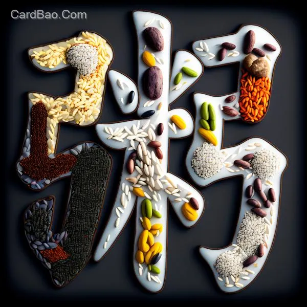 五彩缤纷各种米和豆等粮食拼成的字,白底