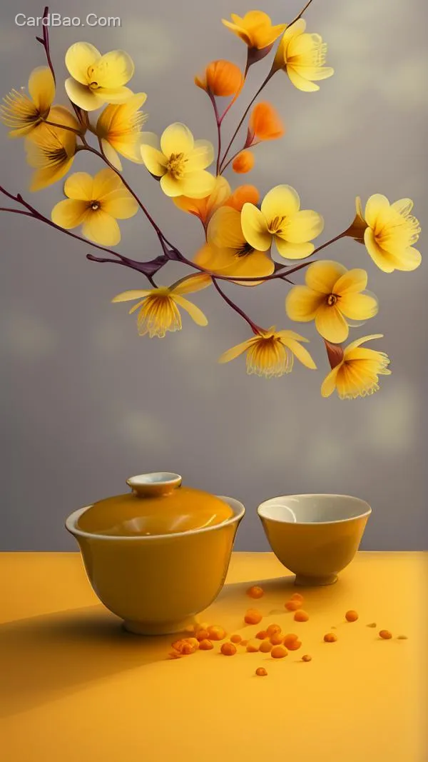 Light orange background with texture, yellow flowers, spring, modern feel.