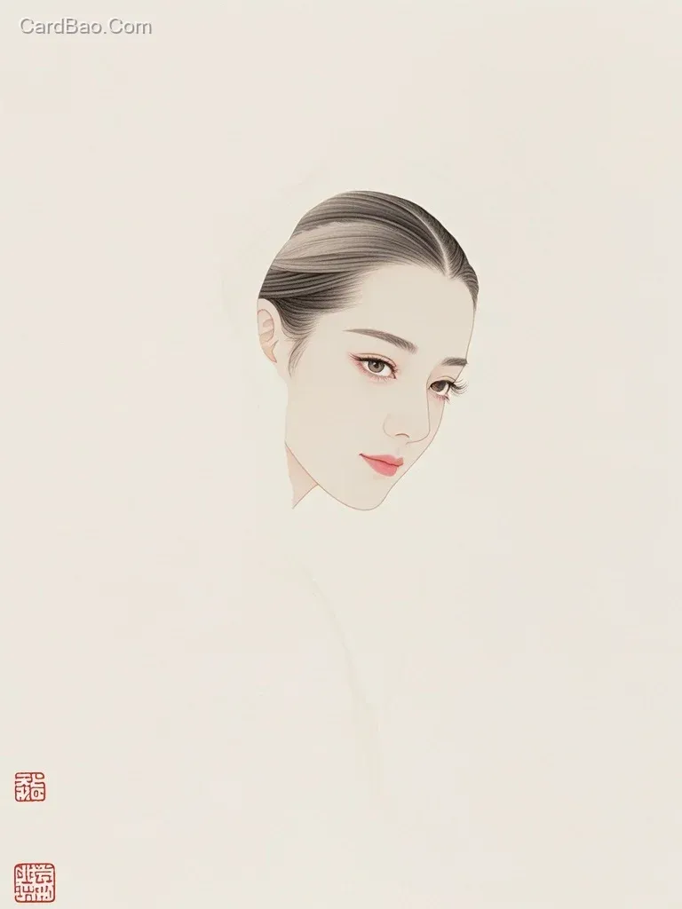 水墨,手绘,热巴,古风,凤九形象,远景,五官精致,极简风格,侧颜,细节精致,新工笔,四周留白,象牙白色背景,